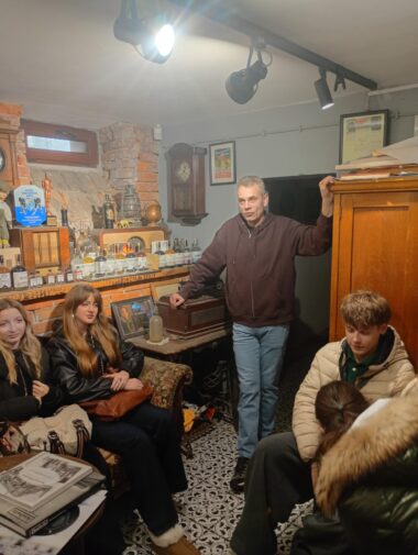 W czasie naszej wycieczki odwiedziliśmy piwniczkę-muzeum Pana Mirosława Ganobisa- miłośnika historii Oświęcimia, pasjonata historii przez duże „P”. Usłyszeliśmy niesamowite historie wybranych zbiorów tego nietypowego muzeum.